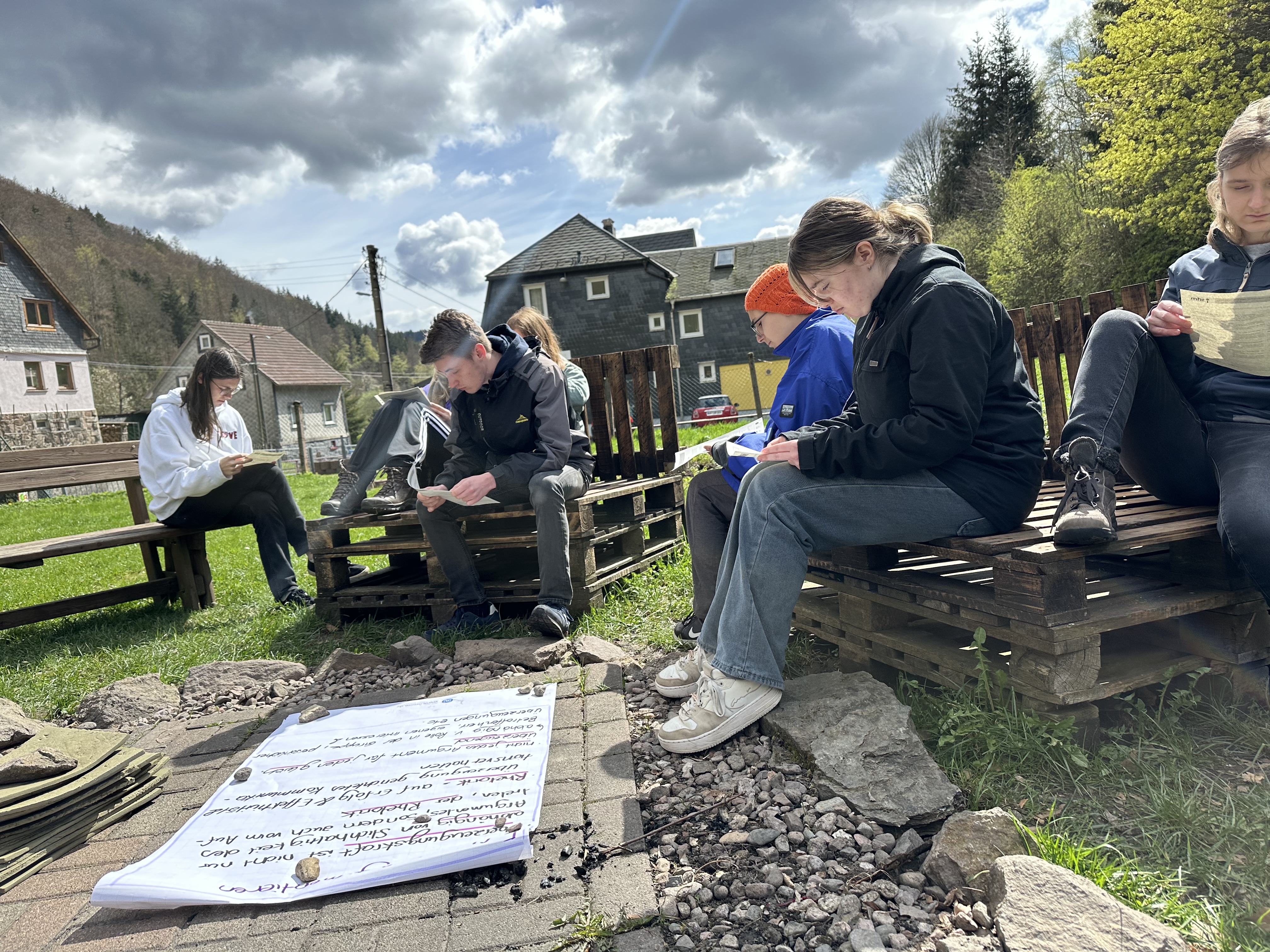 Im Jahr 2024 haben wir mehrere Demokratielots*innen-Tage in Gießübel und an anderen Orten in Thüringen durchgeführt. Dabei haben wir uns mit den Themen „Argumentation, Kommunikation“, „Macht der Sprache“ und „Wie mit Politiker*innen sprechen“ beschäftigt.