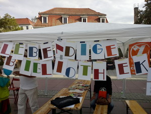 Die lebendige Bibliothek war auch beim SPD Familienfest in Gera vor Ort. Hier konnten sich Leser*Innen mit den Themen Flucht, Journalismus und Graffiti beschäftigen. Das bunte Programm brachte große und kleine Leute aus Gera zusammen.